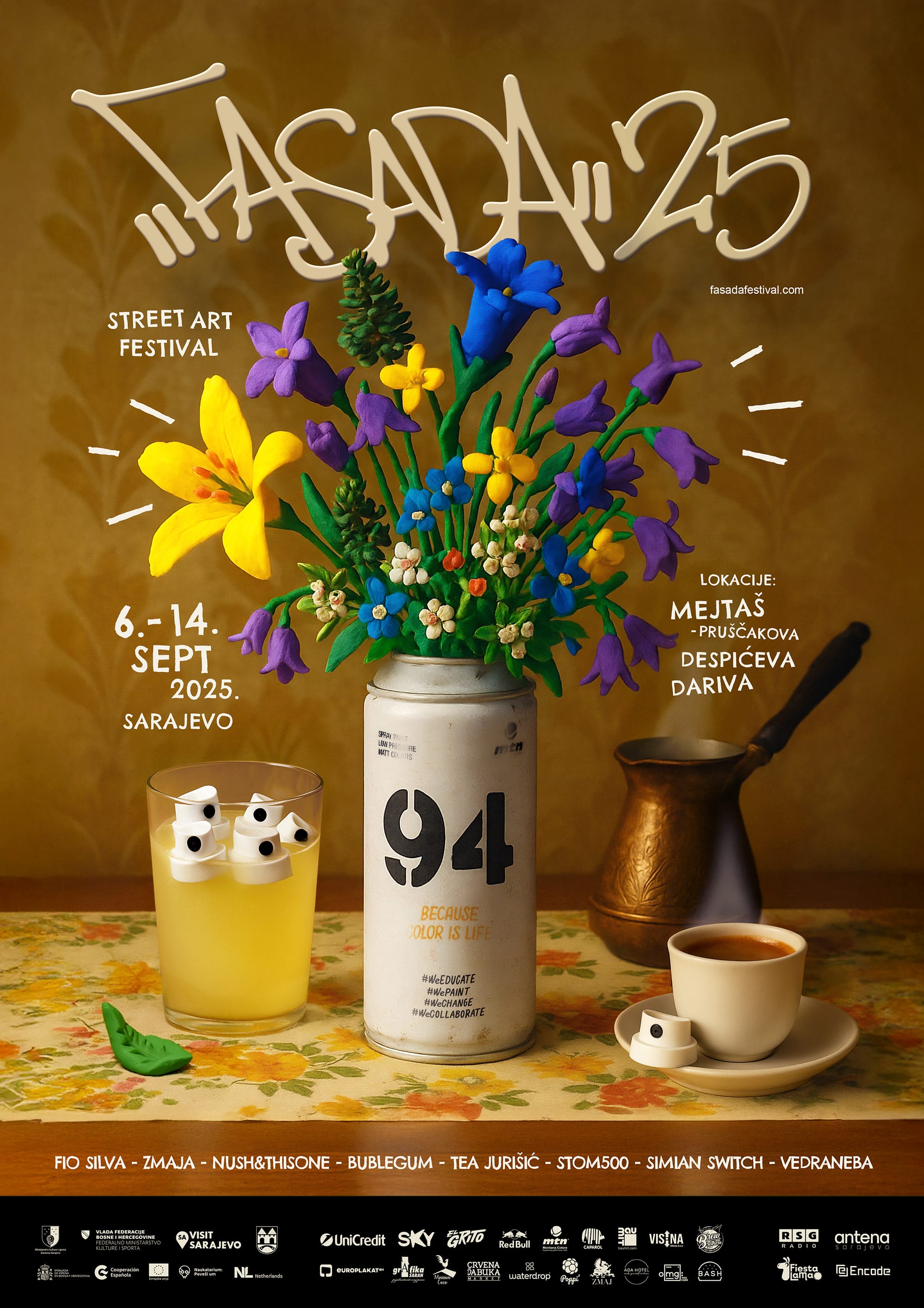 The conceptual starting point emerged from the festival’s theme: endem species of flora and fauna in Bosnia & Herzegovina. In previous editions, the festival explored unique yearly niches—from air-purifying paints to all-female lineup. The 2024 edition centered on the idea of a spray can “landing” on Sarajevo. For 2025, we wanted to merge the spray-can motif with something deeply organic, symbolic, and culturally specific. That is how the idea of a Montana 94 spray can acting as a flower vase was born.